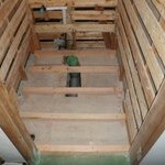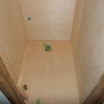 解体作業の終わり、クロス・クッションフロアを貼りつけました。